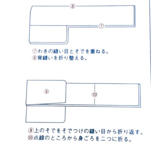 風を通してシミもなければ裾を右に置きしわを伸ばすように畳みます。