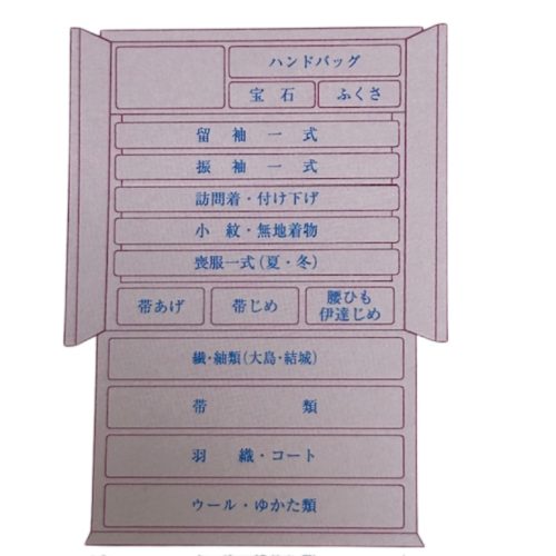 ☆ウールやゆかたなどの普段着を入れ上段に行くほど高級な着物にしましょう。