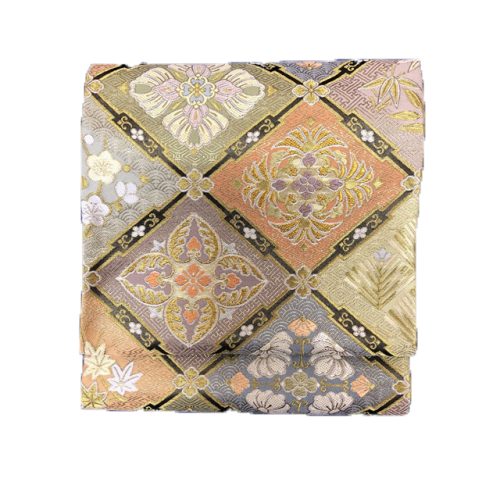名古屋帯です。西陣織 袋帯 藤原織物 謹製 彩王朝菱文 礼装 フォーマル帯 結婚式 結納 お茶席 観劇