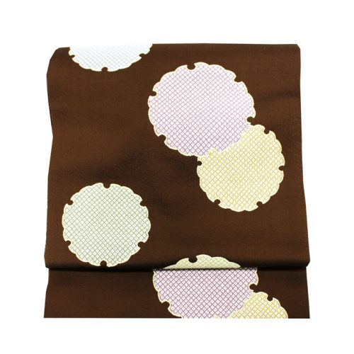 西陣織 名古屋帯「都」謹製|茶系 × 大判雪輪文様|染びった風の彩り