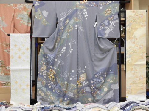 無地(地紋入り含む)や絵羽(縫い目をまたぐ柄)柄、紋付などがあり、着用