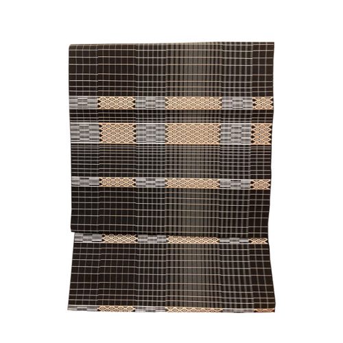 こちらの八寸名古屋帯は、シックなっ黒を基調とした帯地です。