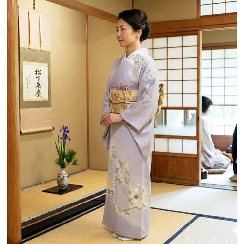 新茶の席には、若紫や薄緑といった淡い色合いの帯が似合います。麻混の上質な帯なら、初夏の爽やかさが一層引き立ちます。一方、初風呂という清浄の儀式を意識するなら、白や淡紫の帯で清廉さを表現するのが効果的。こうした帯選びの工夫こそが、着物愛好家の喜びなのです。