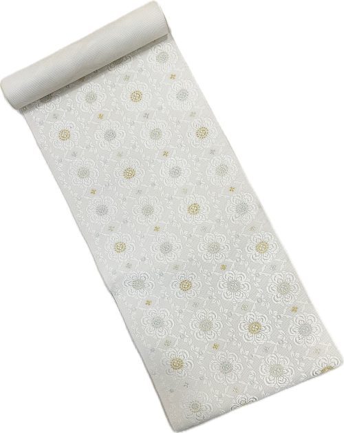 を併せ持つ帯。金糸銀糸を抑えつつも、織りの美しさで格を演出できます。