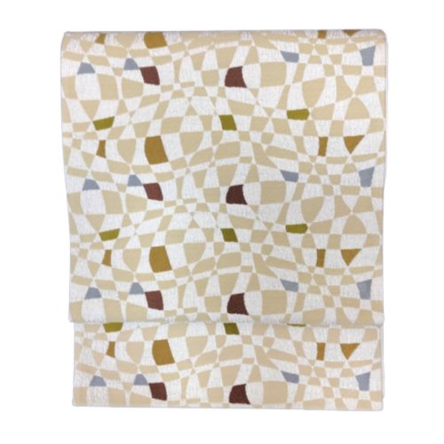 オフホワイトの地に幾何学文様を施しています。幾何学文様には色が使われて